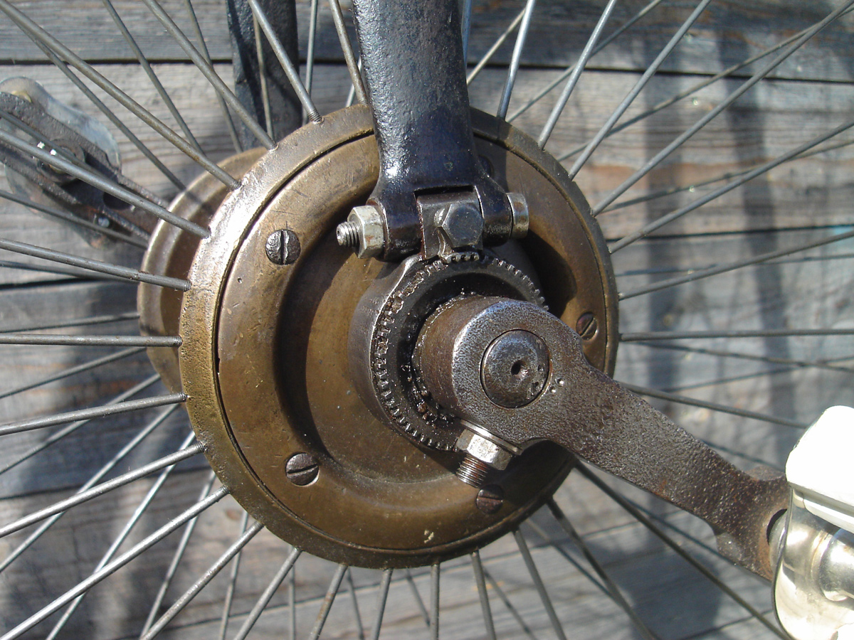 Besonders an dem Rad ist die Befestigung der Speichen. Diese werden in Segmenten, mit jeweils 3 Gewindelöchern gehalten. Dies erleichtert das auswechseln von beschädigten Speichen. Weiters ist das Rad mit Bown’s Aeolus Lagern ausgestattet. Durchmesser des Vorderrads ist 54 Zoll.