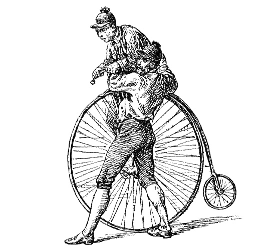 Zeichnung aus „Radfahrer-Leben“ von Heinrich von Esebeck, verfasst Dez. 1884, Liezen, © Verlag Friedrich Beck, Wien