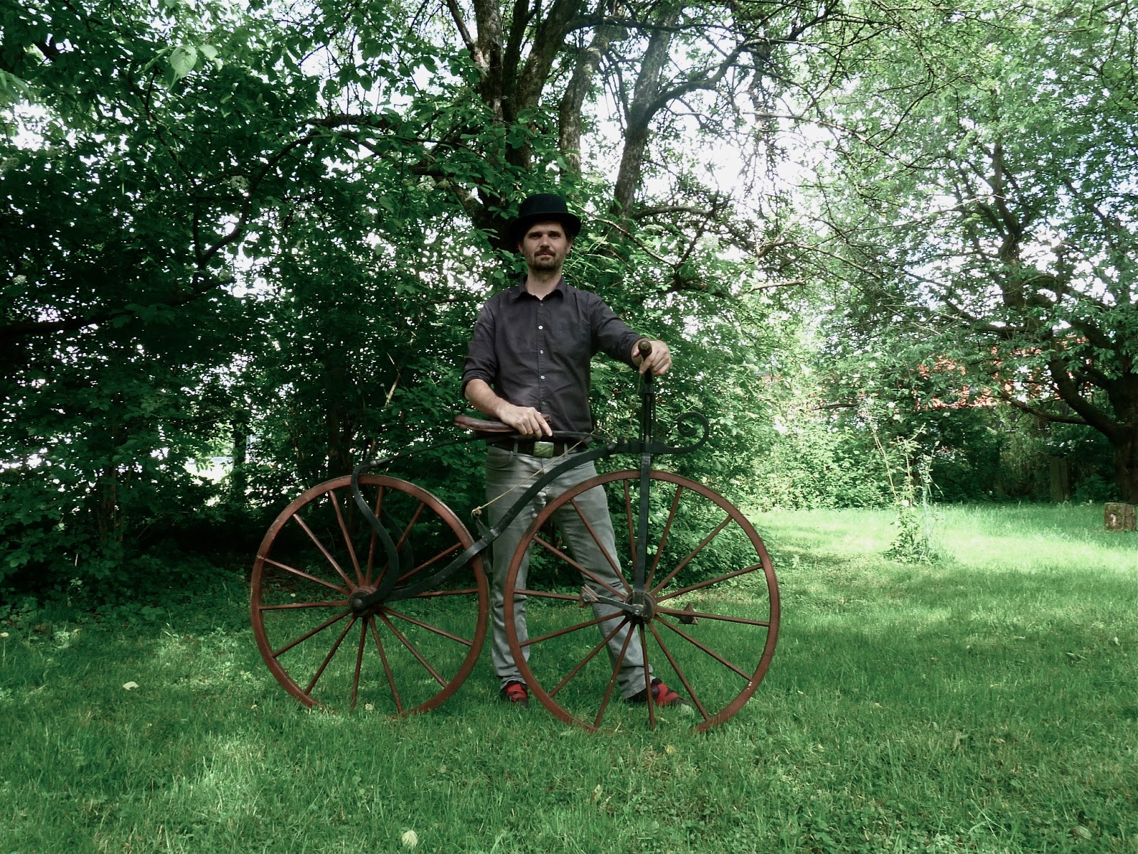 Max reitet ein 1886er Special Star-Sicherheits-Hochrad aus den USA. Sofern es rechtzeitig fahrbereit wird.