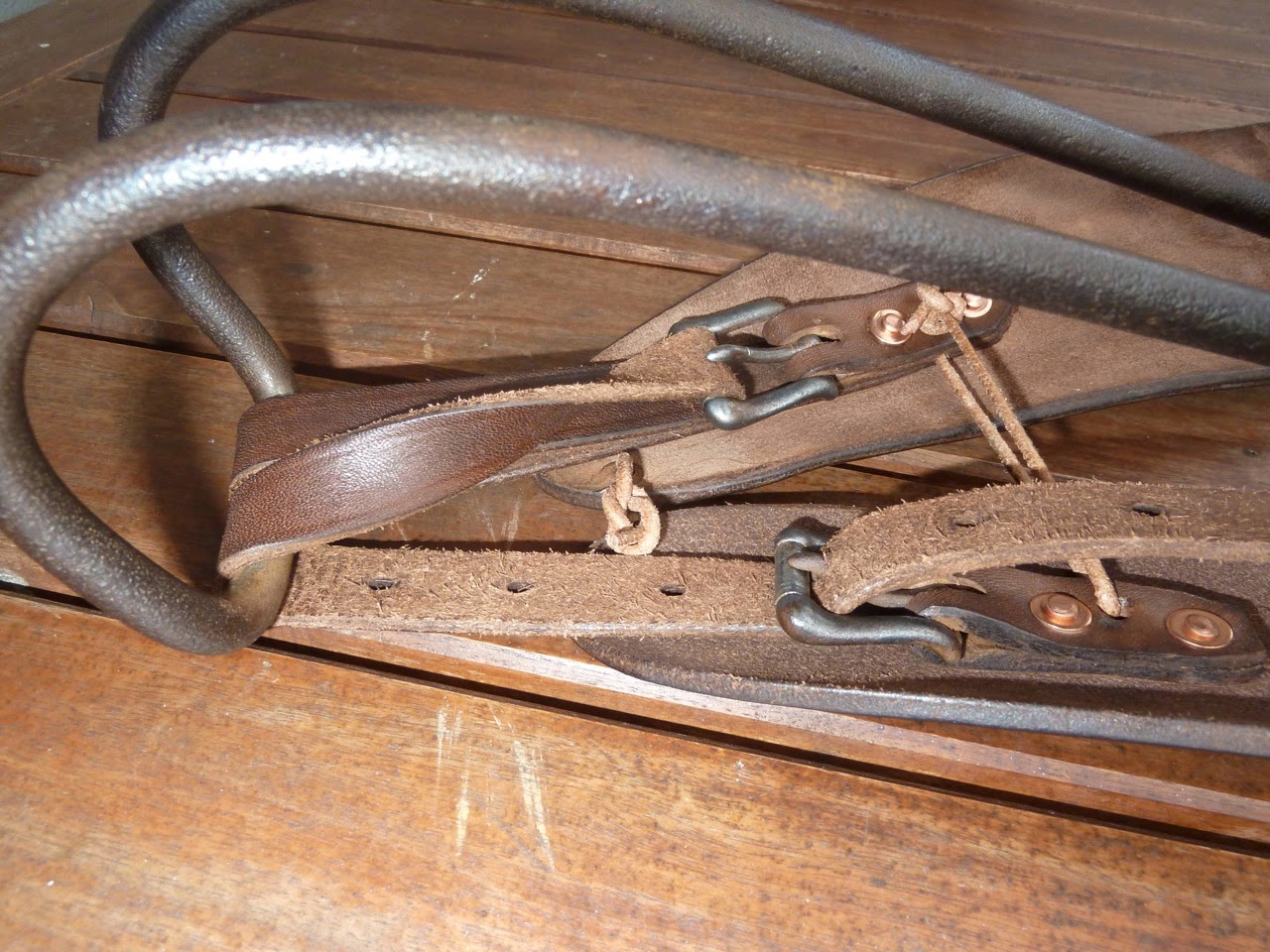 Die Ledergurte wurden ebenfalls getauscht, bei den alten war einer gerissen und der anderekurz davor. Für die neuen Gurte verwendete ich beim ersten Mal zu dünnes Leder, die Gurte rissen nach ca 20 Kilometern fahrt. Mittlerweile habe ich neue Gurte drauf, Lederne Hosengürtel, passgenau zurechtgeschnitten. Farblich sehr passend und auch sehr elastisch.