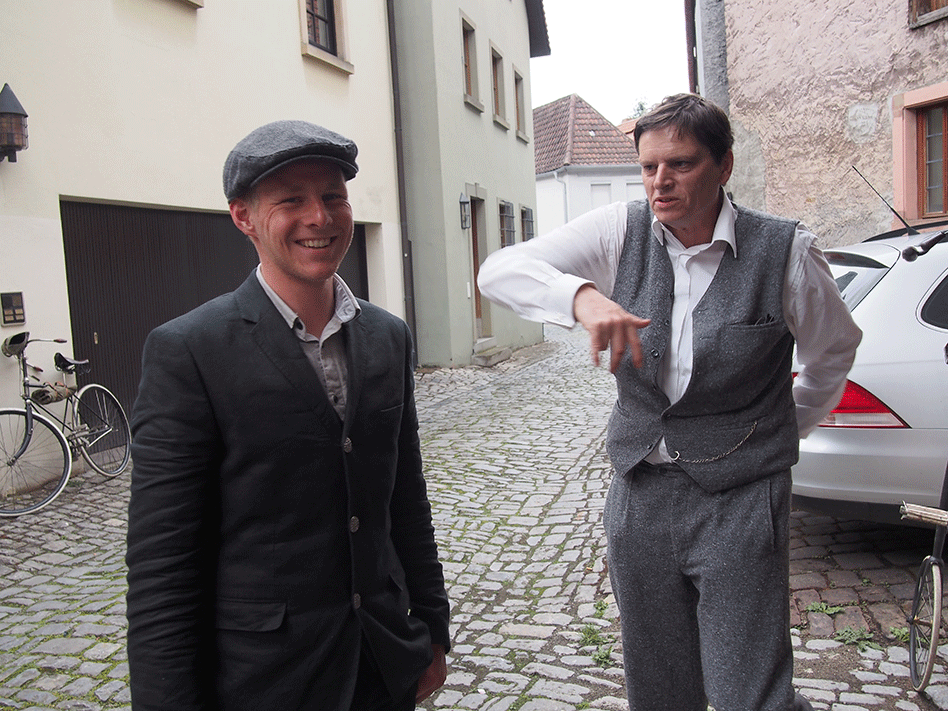 Der Vorderreifen an Ivos Victor Safety hatte sich gelängt. Abnehmen, um ein Stückchen kürzen und wieder aufziehen. Sollte halten. Ein Lager an Helges Rotary war etwas locker. Schraube nachziehen. Fertig. Domi übt sich derweil in Breakdance.