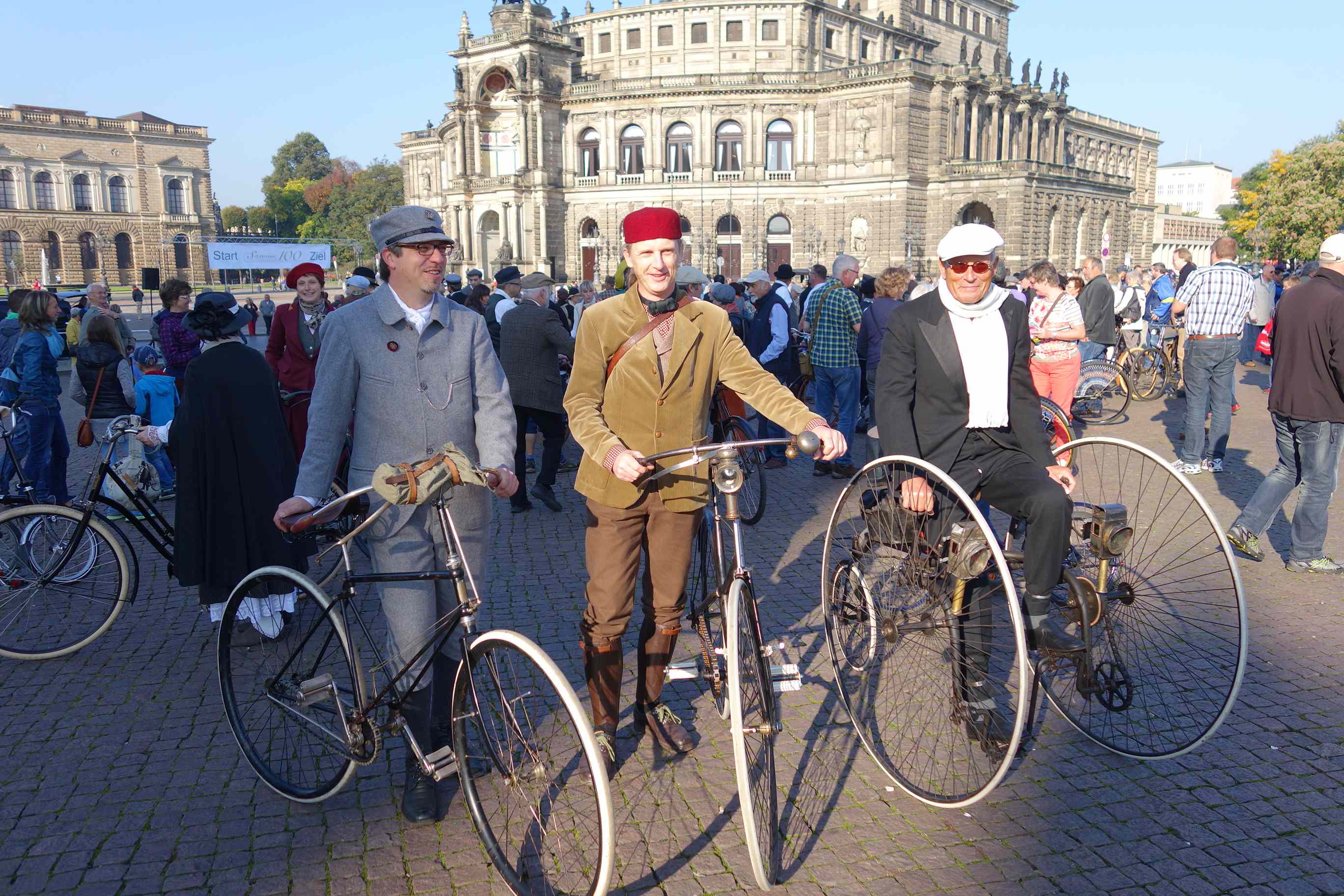 Ein Pfälzer und ein Schwabe folgten der Einladung ihres Dresdner Bundesgenossen zum Stallhoftreffen für historische Fahrräder und zur Saxonia 100. Einem Treffen nur für über 100 Jahre alte Fahrzeuge. Also Fahrrad, Motorfahrrad und Motorwagen. Eigentlich fast ein bißchen jung für uns, aber wir wollten ja mal nicht so sein und über die Motorrfahrzeuge sollte ich gar nicht berichten.