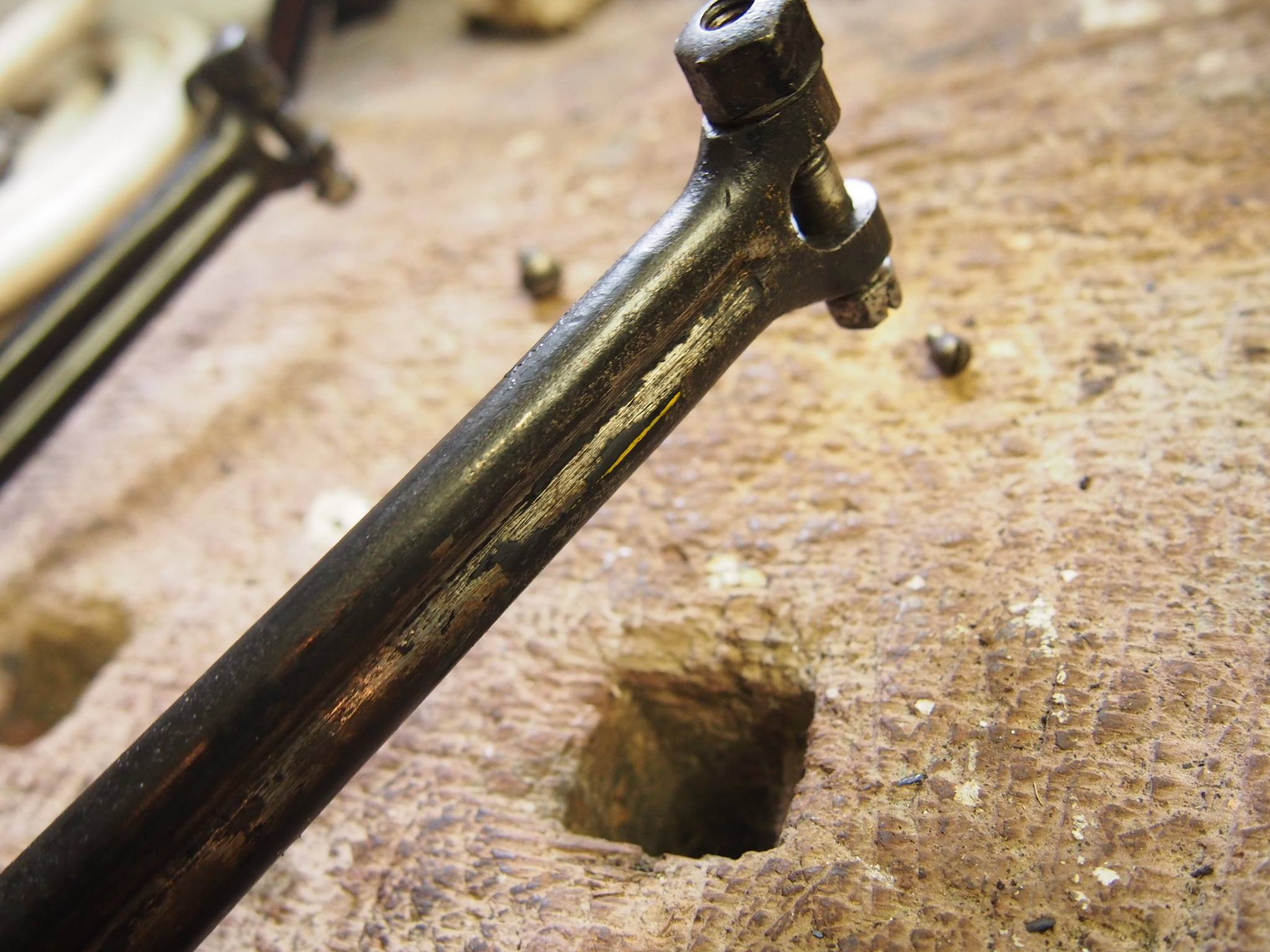 - Sattel: Der Sattel, welcher bei den meisten Rädern aus der Zeit fehlt, war noch montiert aber aufgrund des brüchigen Leders nicht mehr zum Fahren geeignet.