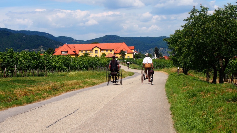 In Dürnstein fuhr dann noch ein Traktorzug voller Touristen bei Kyras Tricycle an, glücklicherweise passierte nicht viel (eine Speiche verbogen) – der Zugführer sollte allerdings den Beruf wechseln, so wie der sich anstellte.