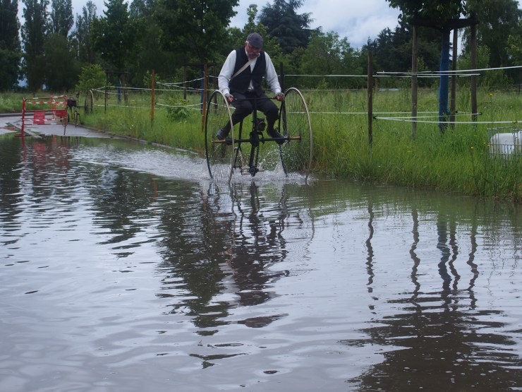 Plus de 10 heures sur la route dont plus de 9 heures sous la pluie et une belle petite averse 500m avant d‘ arriver au restaurant sauveur nous ont aidé à redéfinir le terme vélocipède nautique.